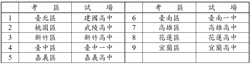 十九、其餘考場規定比照「大學指定科目考試」辦理。
