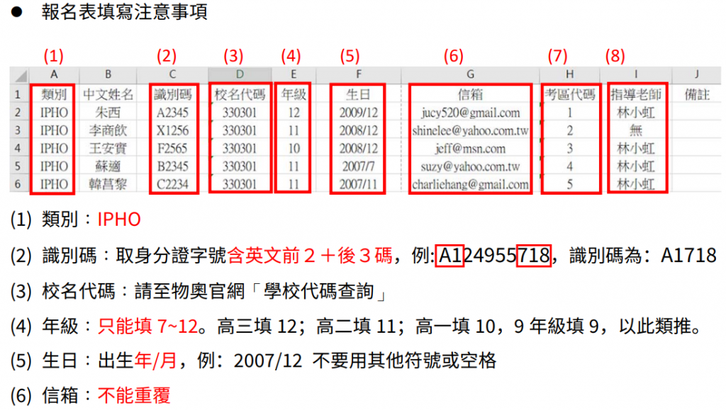 2)『學校註冊申請單』寄至natalie@ntnu.edu.tw(物奧)或twicho@ntnu.edu.tw(化奧)