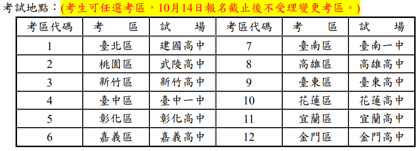 一、初選考試:112年11月4日(星期六)下午1:30~4:30。