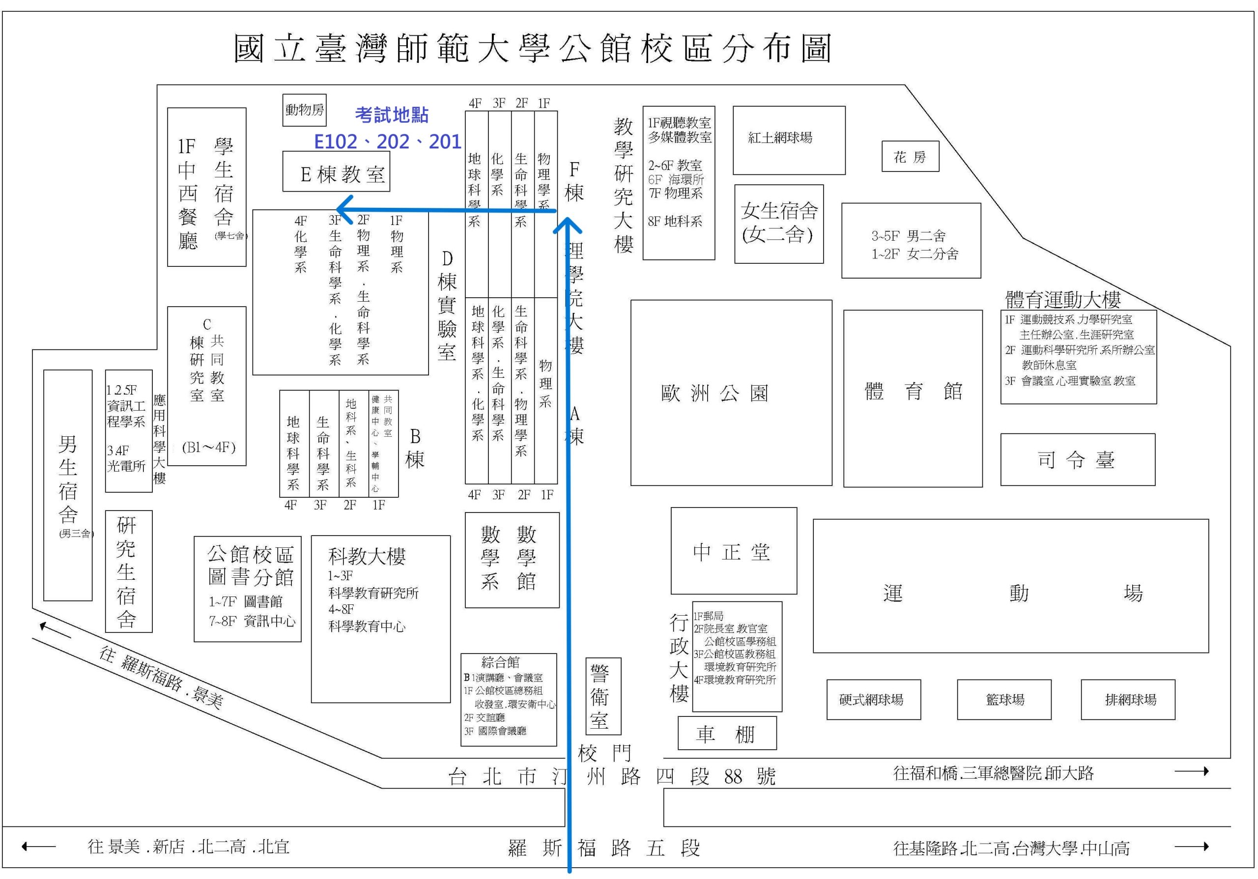 - 考試地點:國立臺灣師範大學公館校區理學院一樓(E102)、二樓(E202)