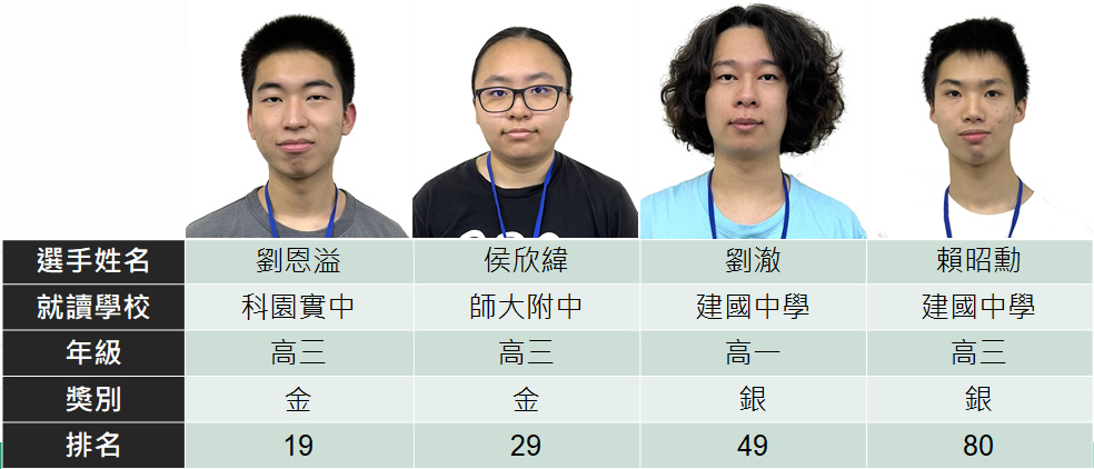 我國選手參加2022年國際資訊奧林匹亞競賽(IOI 2022)榮獲2金2銀佳績,恭喜獲獎同學。