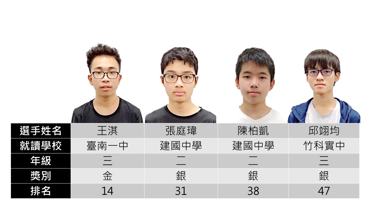 我國選手參加2023年國際資訊奧林匹亞競賽(IOI 2023)榮獲1金3銀佳績,恭喜獲獎同學。