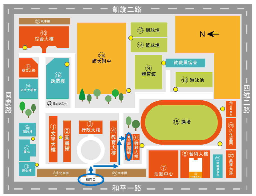 5. 報到地點:北區考場共二個校區(公館校區/和平校區),請考生務必注意考生通知單上標註的考場位置,切勿跑錯校區