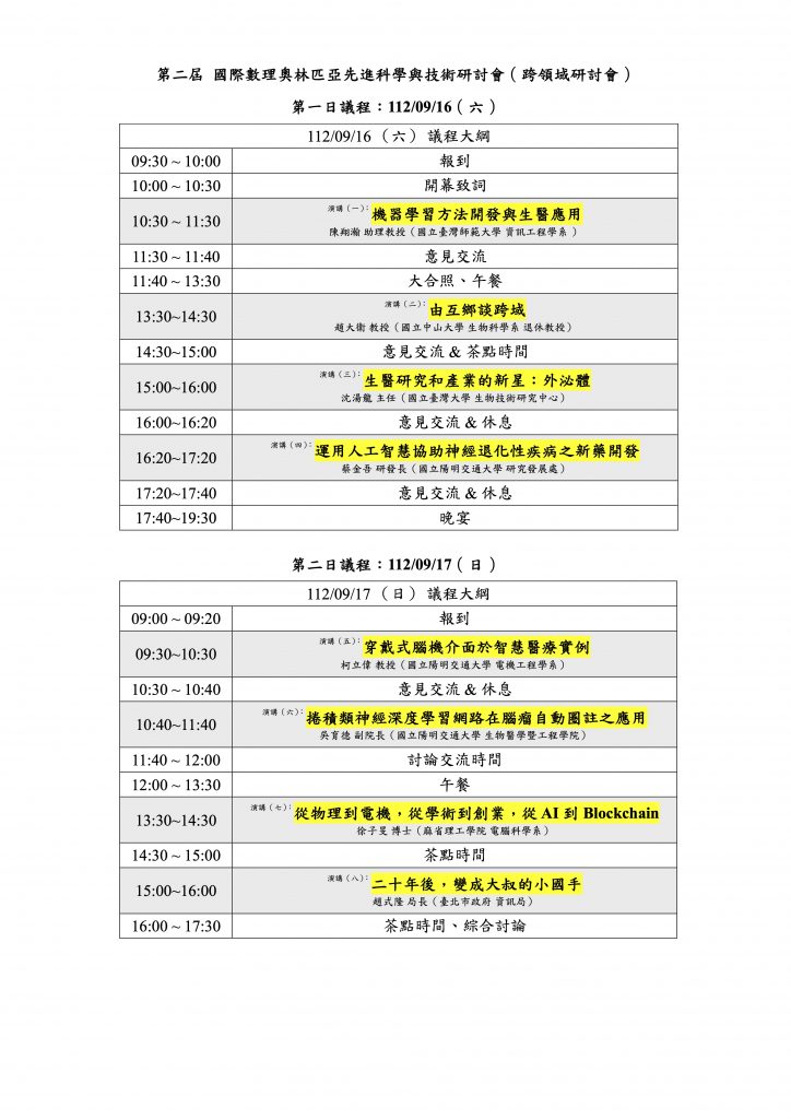 日期:112年9月16日(9:00~19:30,含晚宴)、9月17日(9:00~17:30)